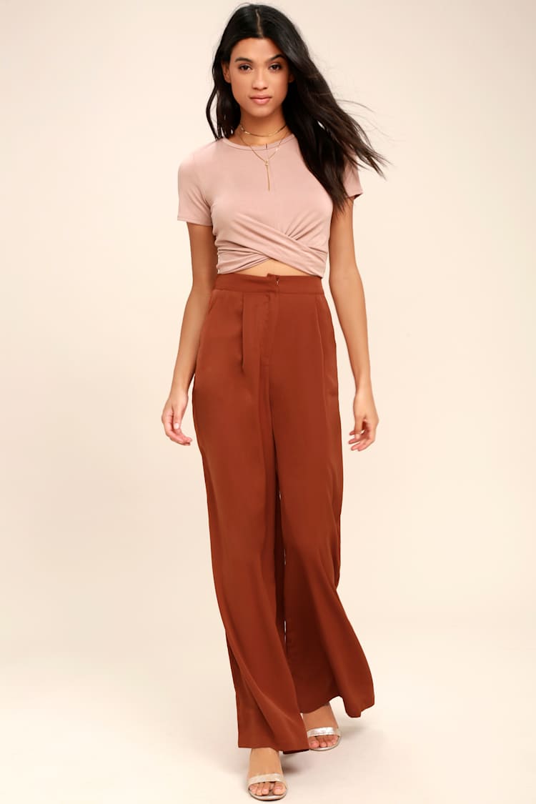 Chic Rust Red Pants Wide Leg Pants High Waisted Pants 44 00 Lulus